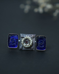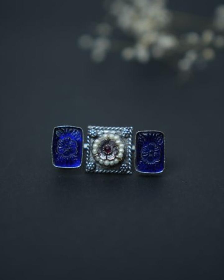 Blue statement oxidized 2 finger ring
