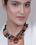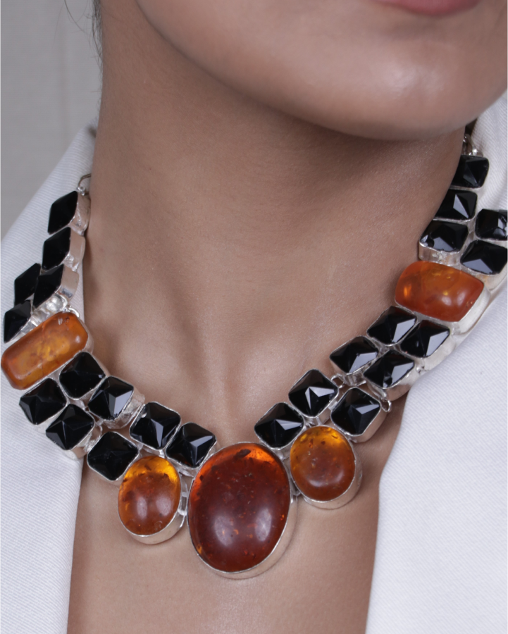 Bold Black Amber Statement Necklace