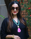 Disclaimer: The Bracelet in picture is only for styling purpose. This is not provided with the Bold Sea Green Fuschia Earth Necklace.