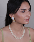 This is Combo of Simple 3 Line Pearl Necklace which complements a wide range of outfits, from formal evening gowns to casual attire, adding a touch of sophistication to any look. It has 3 lines of small size off white cultured pearls strung together a the back with hook opening