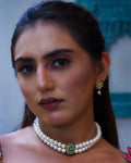 Combo Green Meenakari with Dainty White Pearl Kundan Choker set