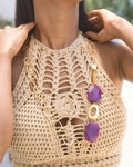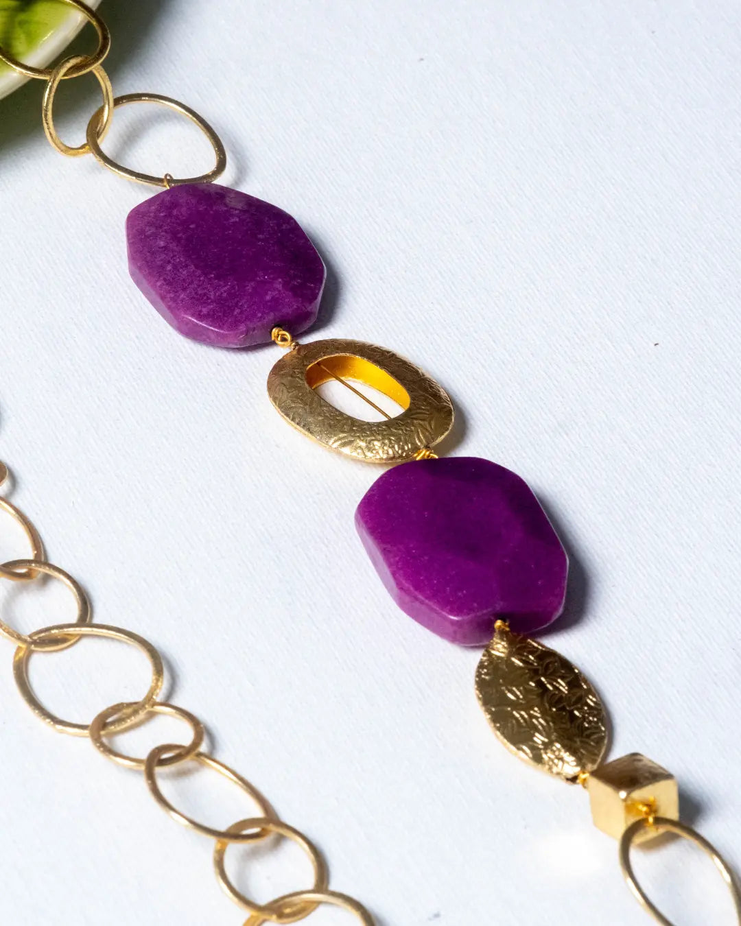 This Divine Side Gold Plated Chain is made with Purple Natural Stone with Rectangle Shape and its Mix Metal Pieces Connecting with Big Round Metallic Rings.