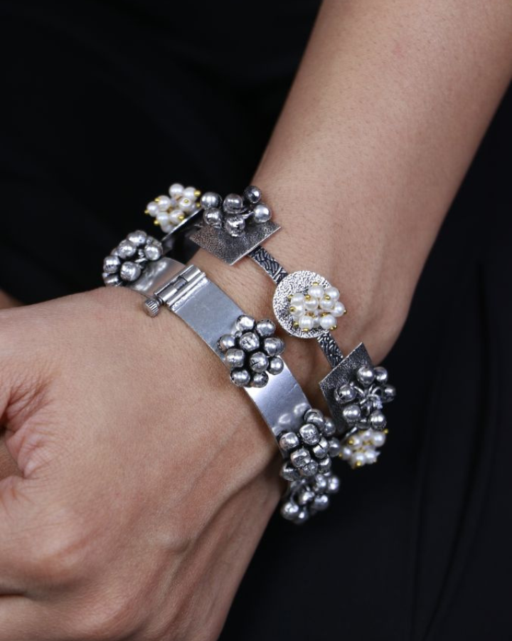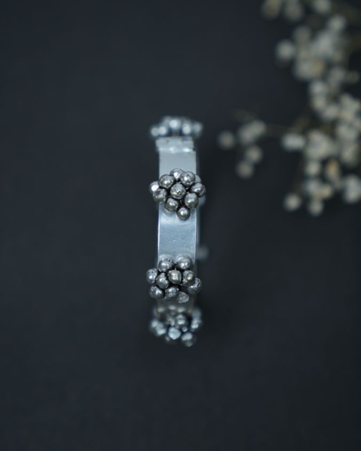 This gorgeous oxidized silver bracelet is decorated with oxidized silver flowers.Its light dainty bracelet.