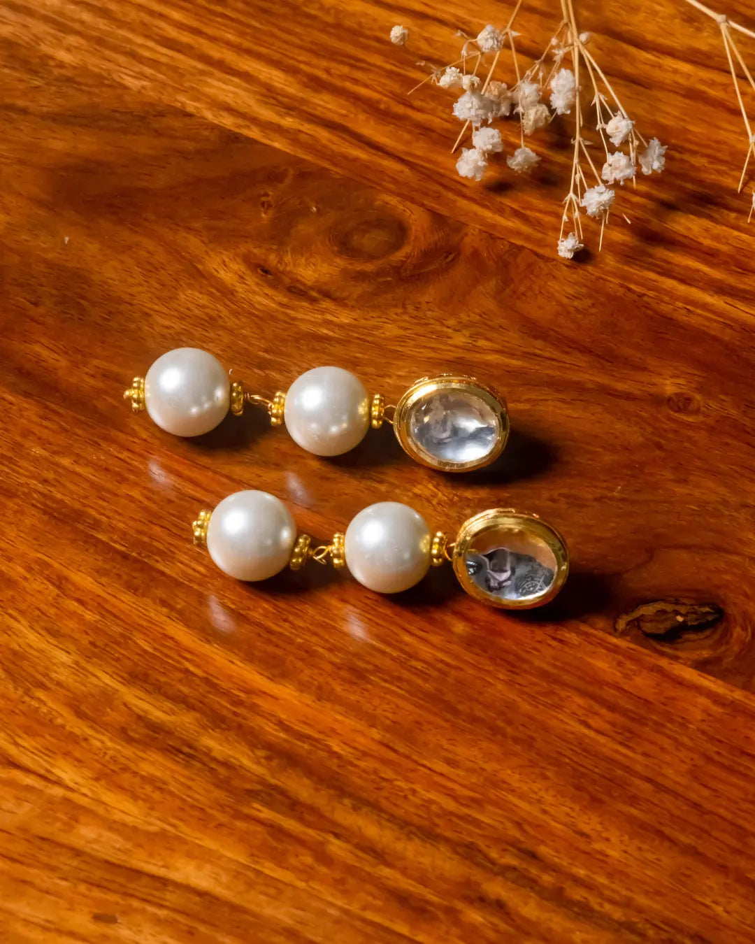 The chain includes an adjustable 'dori', It has matching Earrings with Kundan stud and pearl drops.