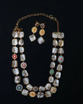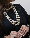 This mother of pearl combo is 2 lines mother of pearl and meenakari necklace with matching earrings, and short mother of pearl necklace with earrings.