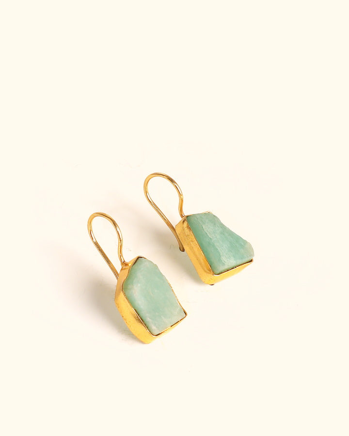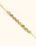 These are metallic gold plated earring with round pastel green agate stone. Made with Hanging Loops. L: 0.5 in Chocker with round shaped pastel green agate stones in metallic gold casing. It has an adjustable chain opening . W: 0.5 in