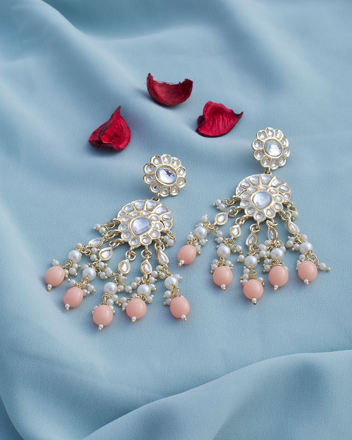 Peach Kundan Earings