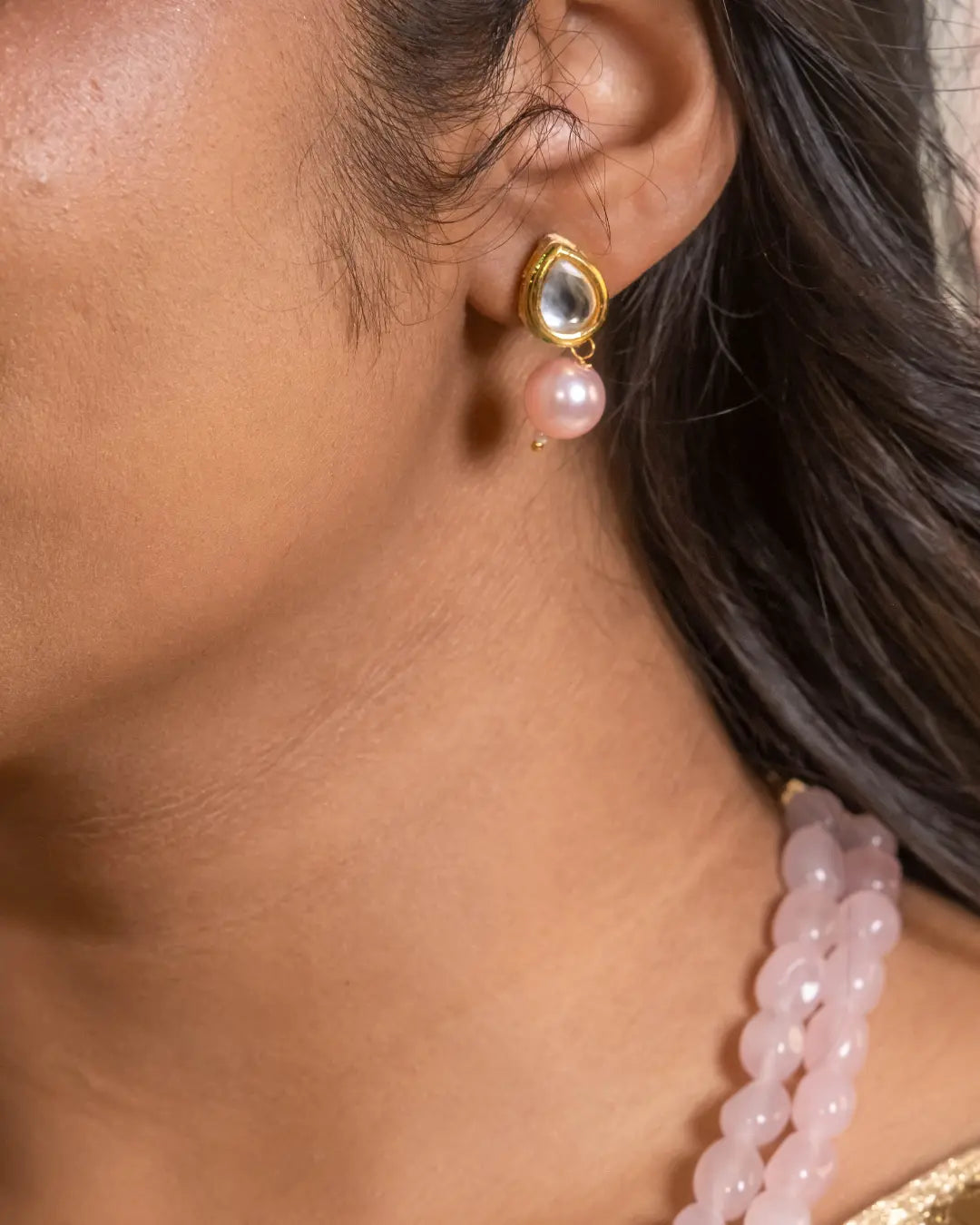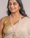 This 2 Layered Rose Quartz Jadau Pendent Necklace