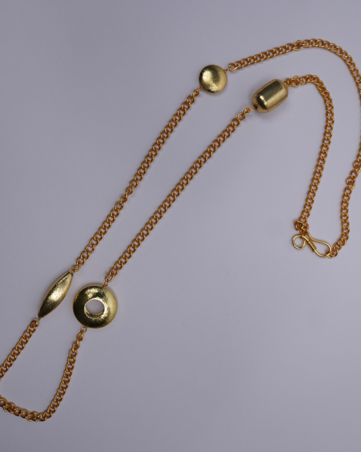 This Trendy Gold Boho Chain Is Handcrafted with Mixed Metallic Pieces.