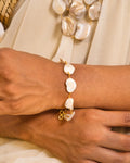 This Pretty Mother Of Pearl Bracelet is crafted from Unshaped Mother of Pearl. This has wire connection and adjustable Chain Finish. This Bracelet gives finishing touch to every outfit.