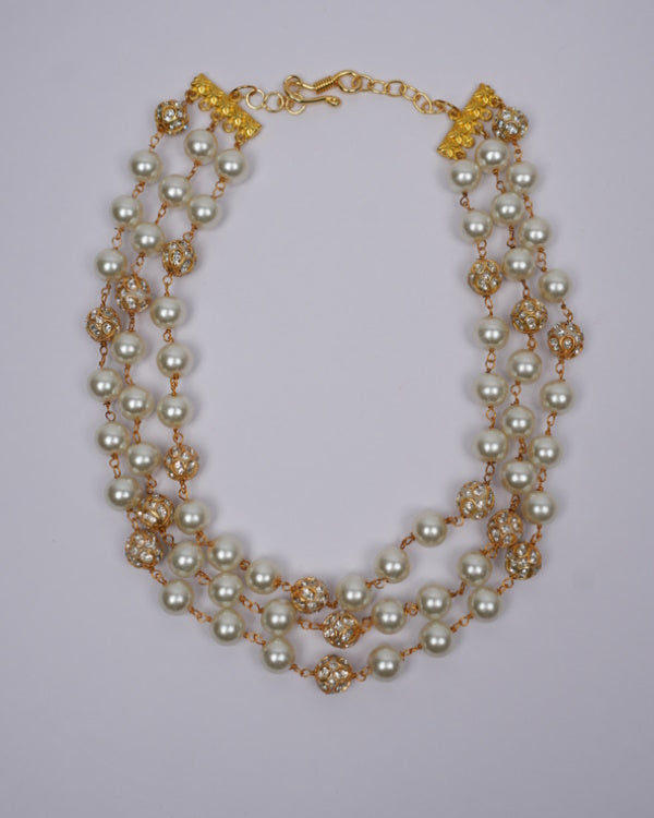 This Gorgeous 3 Line handcrafted mix of pearls and gold crystal bead necklace is a perfect accessory for any event. Made with High Quality in mind, and handcrafted by our incredible artisans, each piece of this collection is unique, as are you.