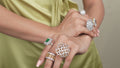 Ritu's magic and imagination that gets to work to create statement pieces. My favorite has always been the mother of pearl sets.You need to own one to feel the love and hardwork that's gone into each design and quality.