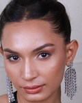 This Elegant chandelier-shaped earrings adorned with shimmering zircon stones, designed to gracefully dangle with push back.